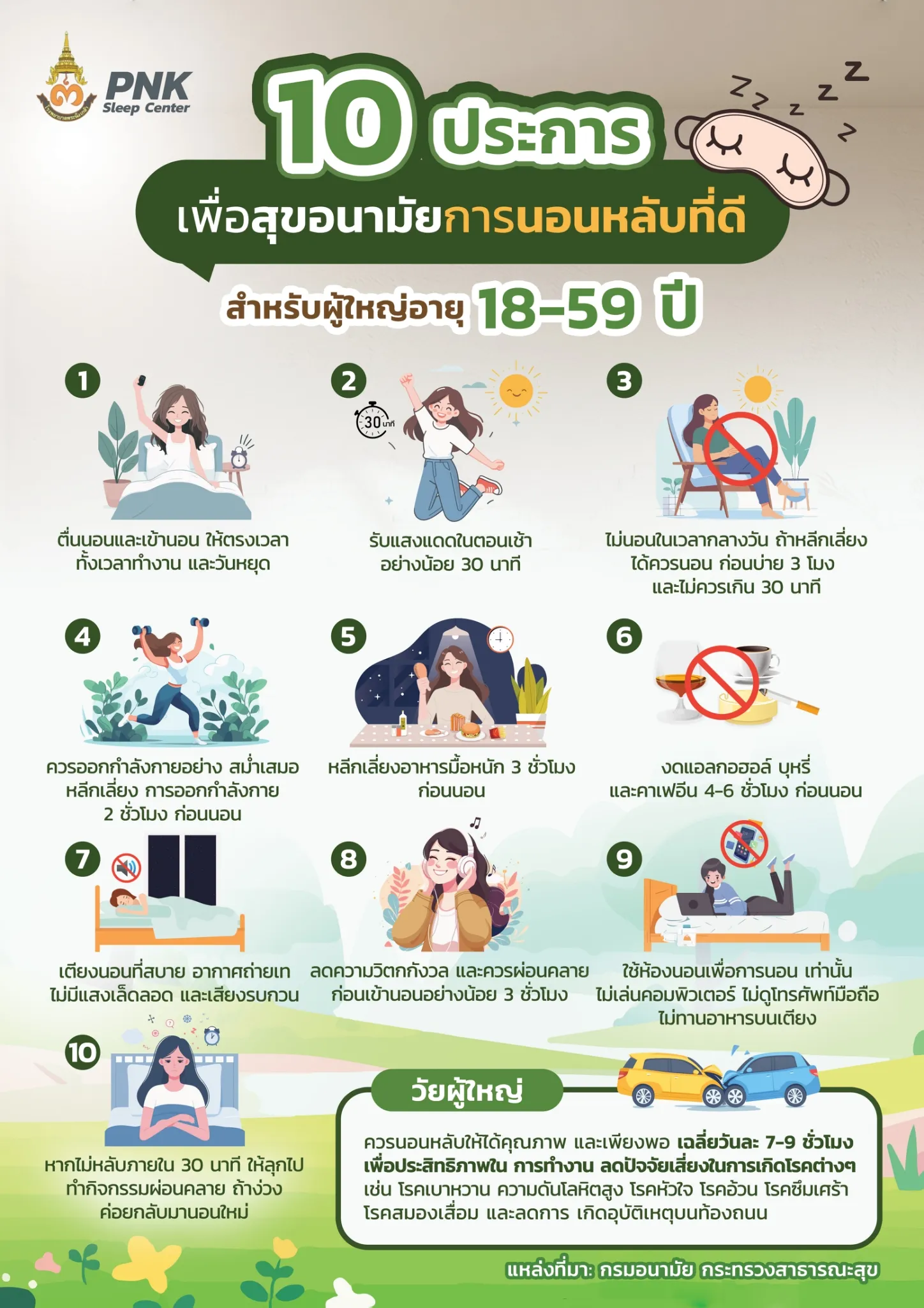 • 10 ประการ เพื่อสุขอนามัยการนอนหลับที่ดี สำหรับผู้ใหญ่อายุ 18-59 ปี