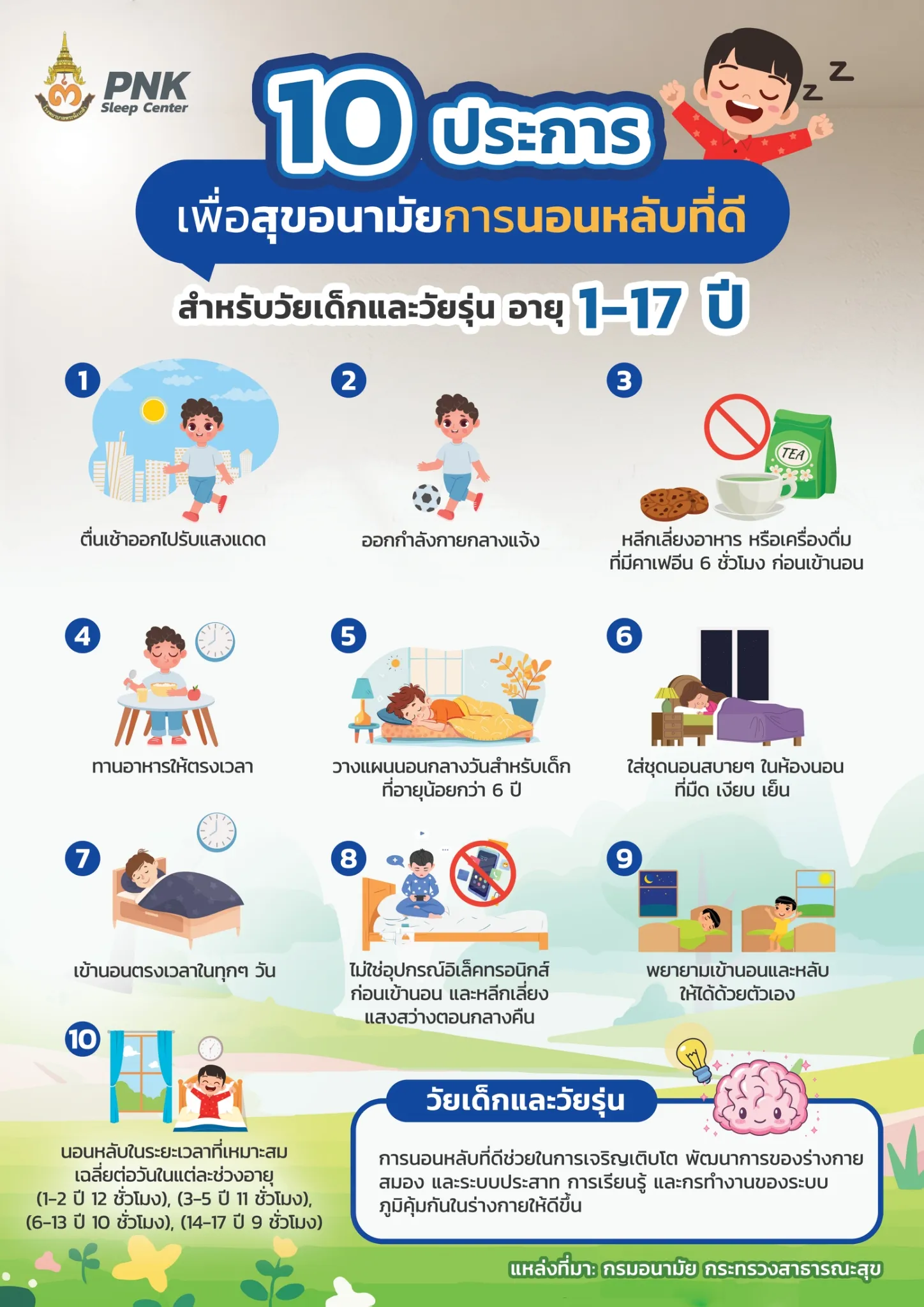 • 10 ประการ เพื่อสุขอนามัยการนอนหลับที่ดี สำหรับวัยเด็กและวัยรุ่น อายุ 1-17 ปี