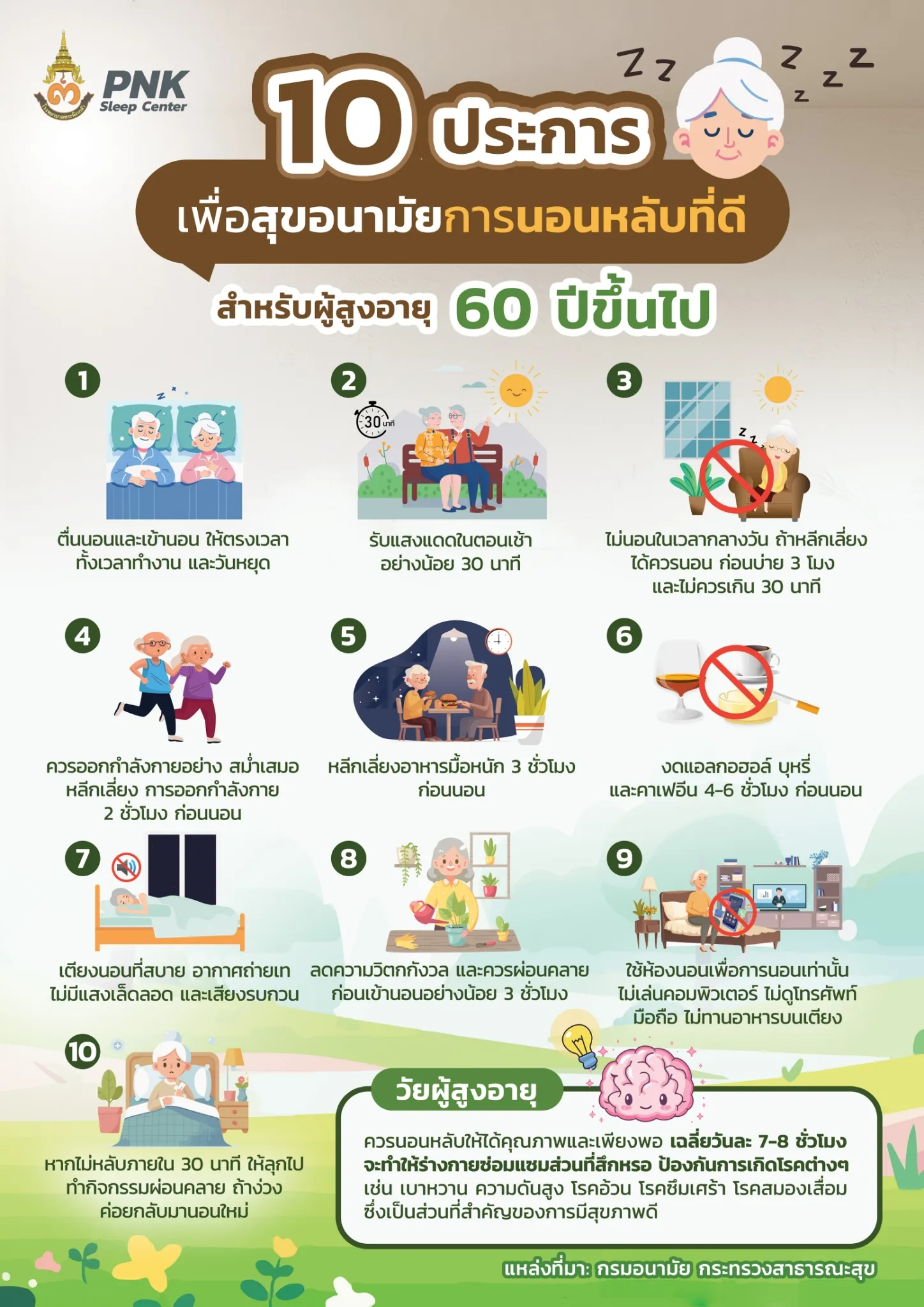 • 10 ประการ เพื่อสุขอนามัยการนอนหลับที่ดี สำหรับผู้สูงอายุ 60 ปีขึ้นไป